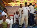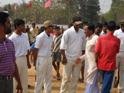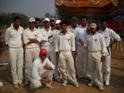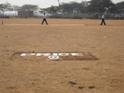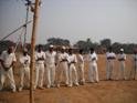 The umpires taking positions | | The first ball is about to bowled | | Mathakarogola college lecturer, commentating. He is the Orissa Cricket Academy Commentator. | | The game underway | | The dressing room | | This banner helped to determine the boundary | |